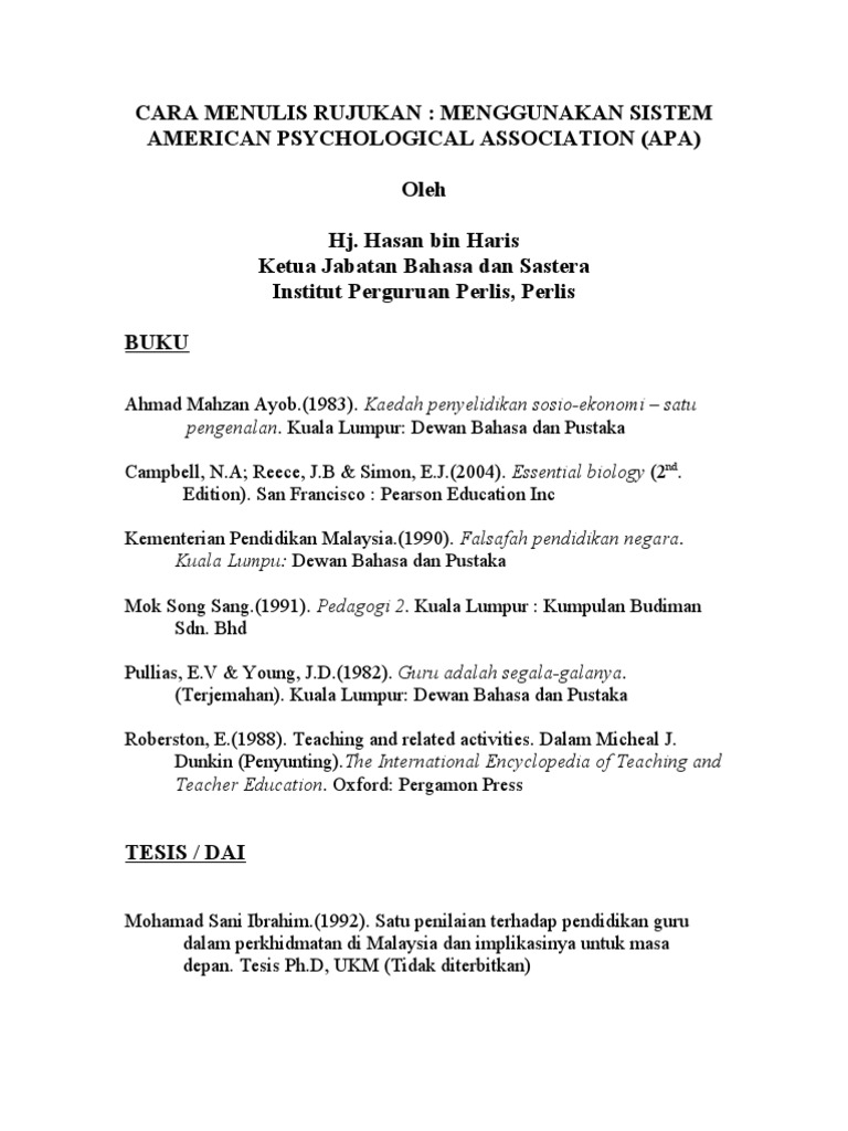 Mereka menyusun petunjuk umum tentang kepenulsan naskah yang didalamnya juga terdapat tata cara penulisan daftar pustaka atau rujukan yang dikenal sebagai uniform requirements for. Cara menulis kutipan langsung yang kurang dari 4 baris, maka rujukan ditulis di antara tanda kurung, diawali dengan nama akhir seperti yang dalam sedangkan cara menulis kutipan langsung lebih dari 4 baris, maka penulisan dipisahkan dengan jarak 3 spasi dari teks, jarak antar baris kutipan ialah 1. Dalam menulis sumber rujukan tersebut, kita mesti mengikuti sejumlah cara langkah pertama dalam penulisan catatn kaki dari buku terjemahan adalah menulis nama penulis buku tersebut. Rujukan dari buku yang berisi kumpulan artikel (ada editornya). Analisis tesis tentang kutipan dan rujukan.
