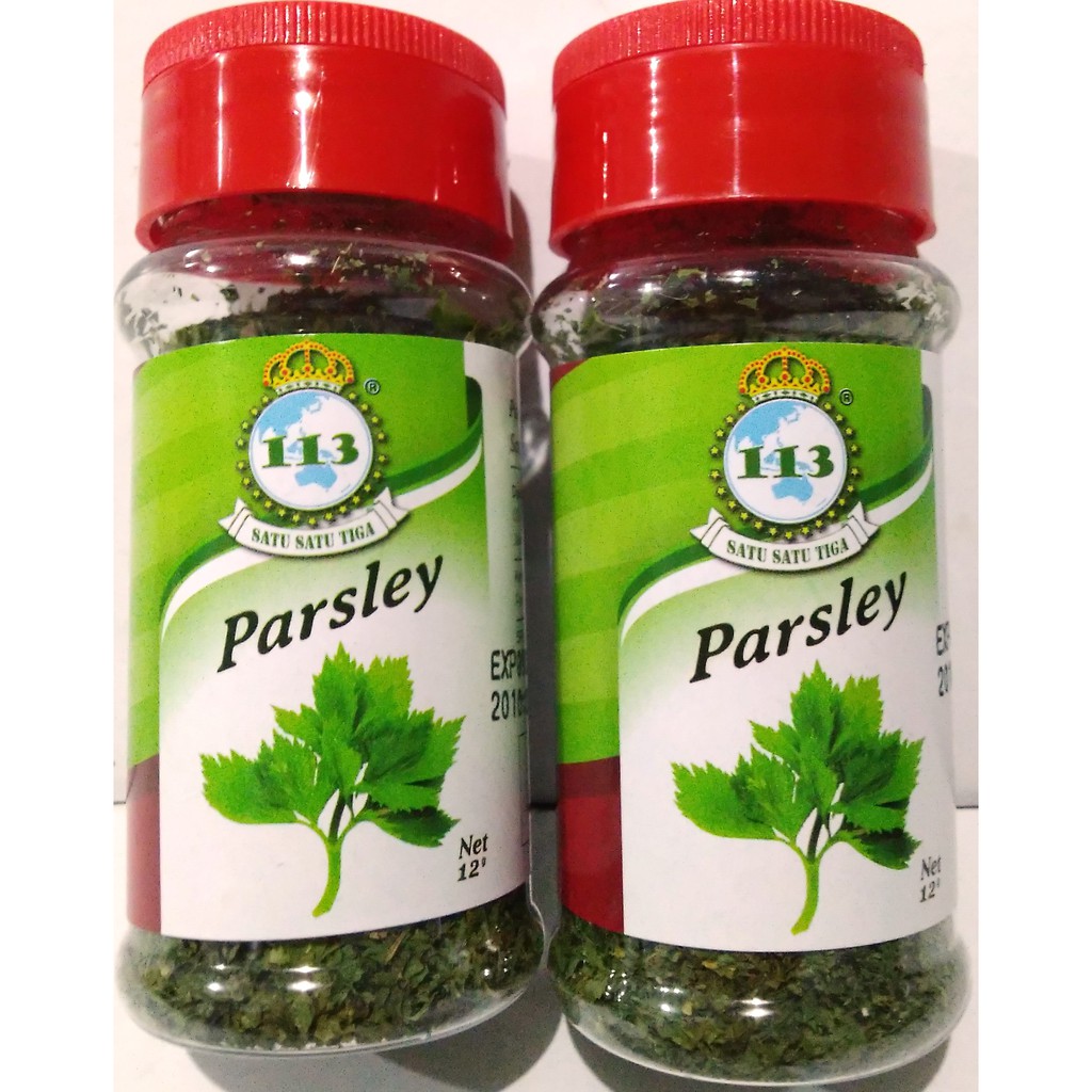 Parsley atau peterseli merupakan keluarga dekat jenis wortel maupun seledri. Kadaluarsa produk sekitar 15 bulan hingga 24 bulan tergantung dari kualitas rempah seperti musim, jenis dan metode pemrosesan awal. Daun peterseli keriting (petroselinum crispum, daun ini dikenal sebagai garnish kaya nutrisi/gizi, apalagi parsley kering cukup terkenal sebagai bumbu yang sering dicari dan populer di indonesia. Daun parsley yang terbuat dari daun parsley pilihan bisa digunakan sebagai campuran olahan makanan ataupun minuman. Leraikan daun parsley daripada tangkainya.
